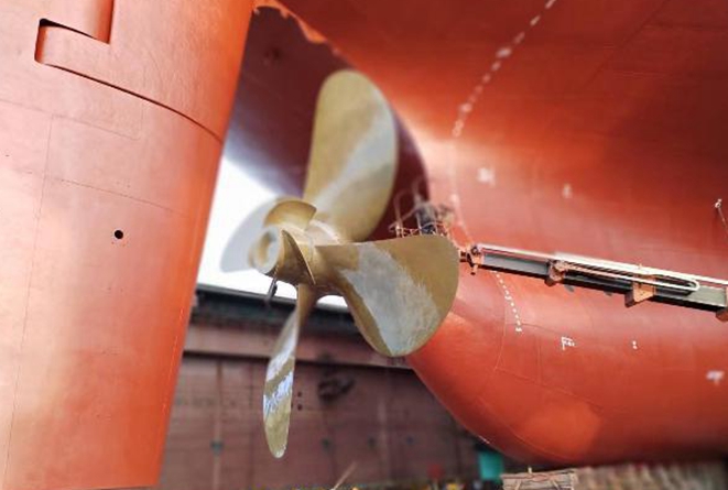 “螺旋桨直径10米,它表面敷设的柔性蒙皮材料,模拟了海豚皮的特征。”中国科学院宁波材料技术与工程研究所(以下简称“中国科学院宁波材料所”)海洋关键材料重点实验室研究员曾志翔向记者介绍,这种船用仿生柔性减阻材料在实船应用前取得了中国船级社产品认证,满足《控制船舶有害防污底系统国际公约》要求。